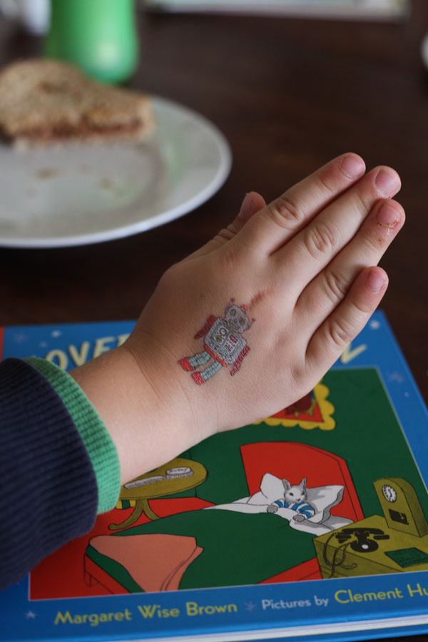 Apparently Hank had the same idea, because he’s started asking for a tattoo. A real tattoo, like all of our friends.