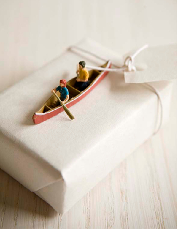 I try to package presents in useful bags/boxes, or blankets/towels. I’ve got a very successful system for baby shower presents with hooded towels, meaning no wasteful packaging at all. If I do need to use paper, I try to use kraft/butcher paper & decorate it with stamps.