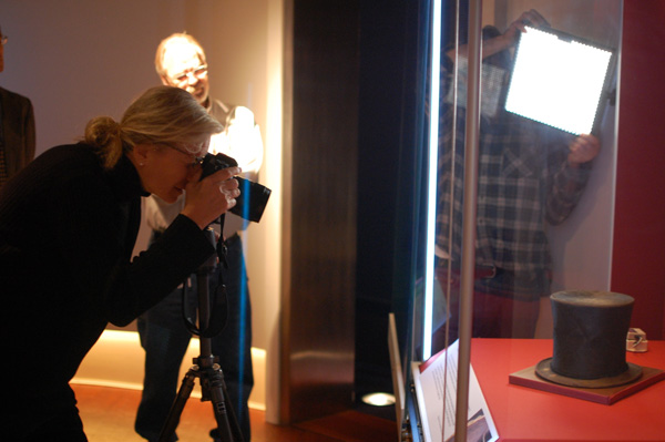 Image of Annie Liebowitz photographing Lincoln’s hat from the Abraham Lincoln Presidential Library and Museum Blog