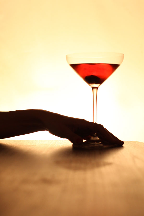 Put everything but the cherry in a shaker with ice. Shake-shake-shake until it’s arctic, and little chips of ice are floating on top. Tuck your cherry in a cocktail glass, and ease the drink right in.