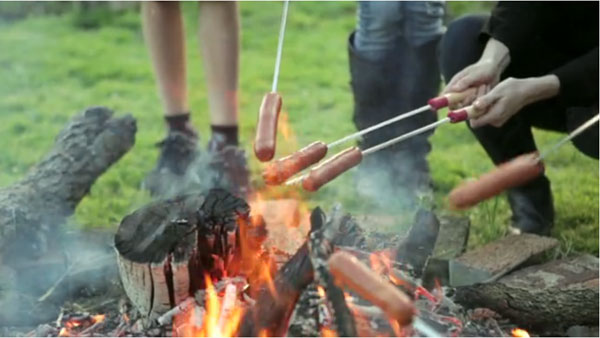 It’s a nice treat to have traditional movie candies on hand (Junior Mints, Rasinettes, Twizzlers), and perhaps hot dogs if you want to provide a meal. We roasted ours over a fire before the show. You can offer lemonade or soda, beer or sangria for the grownups. Because we screened during colder weather, we set out a crock pot with cider and had rum on hand for those who wanted to spike.