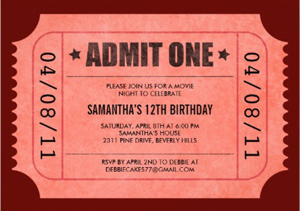 Admit One Paper Invitations from Unique Invites
