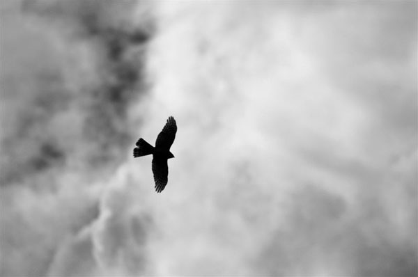 It’s a light rain. I’m floating alone in the swimming pool, when a red-tailed hawk cuts through the clouds above me. I think of him hours later, after the long drive home. My hair still smells like chlorine.