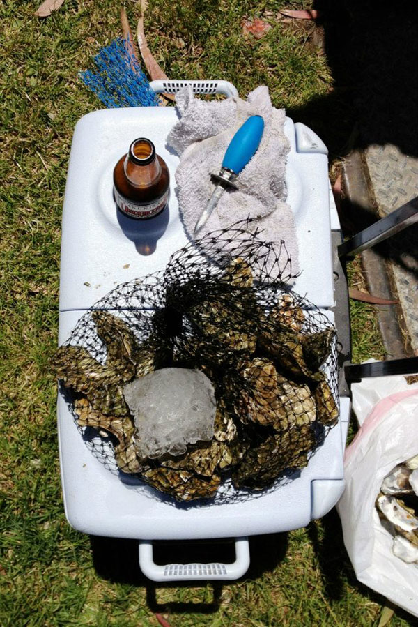 A couple of Matt’s friends woke up at the crack of ungodly, drove to the Tomales Bay Oyster Company and brought home a cooler of fresh oysters. If you live nearby, you should do this. It’s $40 for a bag of 50 oysters, and if you bring them into the city, you can have margaritas without worrying about how you’ll get back from Tomales Bay. Genius.