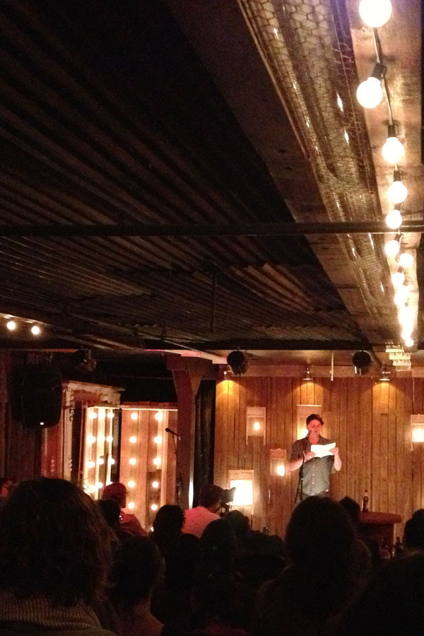 Image: Stuart reading a piece on mortality at You’re Going to Die.