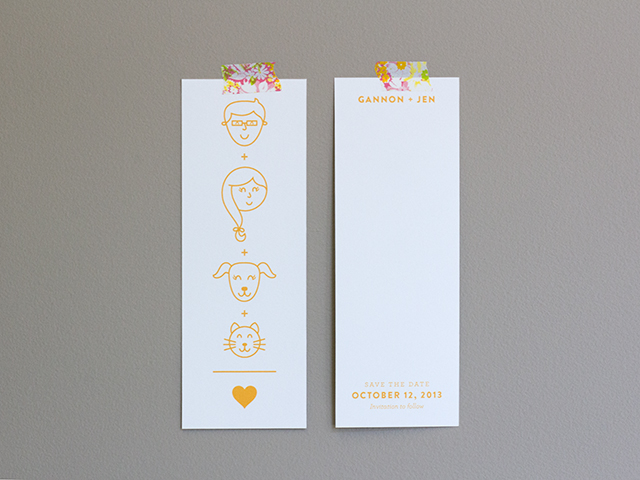 Jen made these bookmark save the dates for her upcoming wedding. Clever.