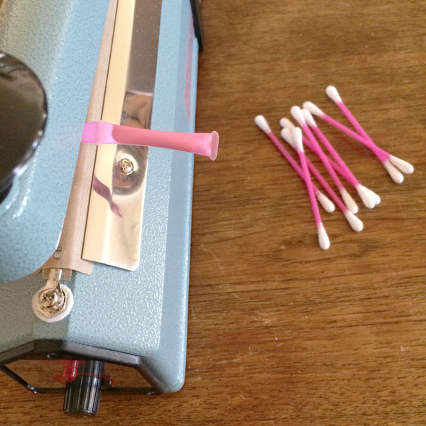 I use the plastic bag or extra straws to “clean” the sealer if product leaks onto it. I just clamp down on the plastic and most of the sunscreen or whatever lifts off with it.