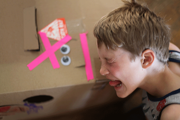 In the middle of drawing an arm hole, Hank said, “Mom. Building robots is SO. MUCH. FUN.”