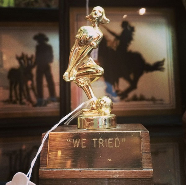 I’m starting with Minnesota over at Go Mighty. I found this trophy in an antique store outside Minneapolis, and it still cracks me up.