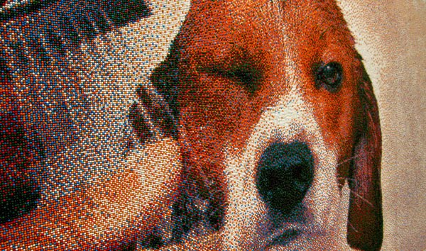 Joe Brouchu made a dog portrait using sprinkles, 221,184 rainbow nonpareils in six colors. It took him about eight months. (via Artstomer)
