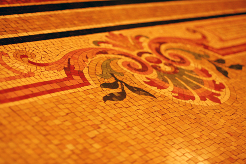 The bar’s mosaic tiles were restored after wall-to-wall carpet was glued to them in the ’50s.