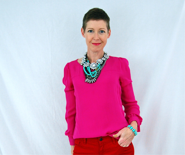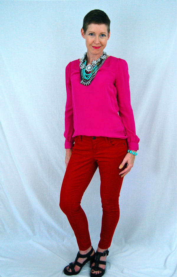 In general, I would describe my look as fairly classic and conservative. But every once in a while, I like to mix it up a little. And by “mix it up” I mean pile on multiple huge necklaces, shimmy into some skinny jeans, and add a pair of reallyreallytall platform sandals.
