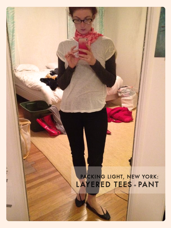 I’m in New York about once a month lately for work and pie, so I thought I’d give you a peek into how I pack for variable weather, and a trip that encompasses both business and social elements. Because I like to pack everything into a single carryon and a laptop/camera bag, I tend to plan my outfits beforehand.