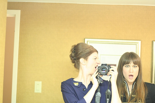 Karen took some photos of me for her upcoming book The Beauty of Different. She taught me Andrea’s trick for making people laugh in photos, which is to ask them to turn away and then spin around really fast with a fierce face. Like so: